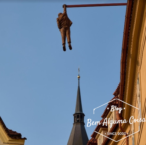 Um dos trabalhos mais conhecidos do artista Tcheco David Cerny, estando exposto em Praga, na localização aqui embaixo.