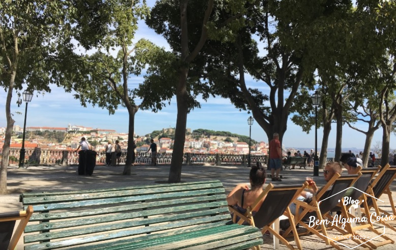 Além de contar com um jardim de mesmo nome, cadeiras para admirar a vista e seus quiosques, de lá também é possível ver outros pontos da cidade como o meu queridinho Castelo de São Jorge, o Rio Tejo e a Avenida da Liberdade.